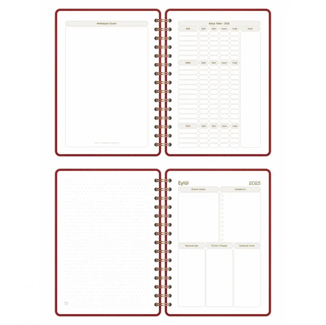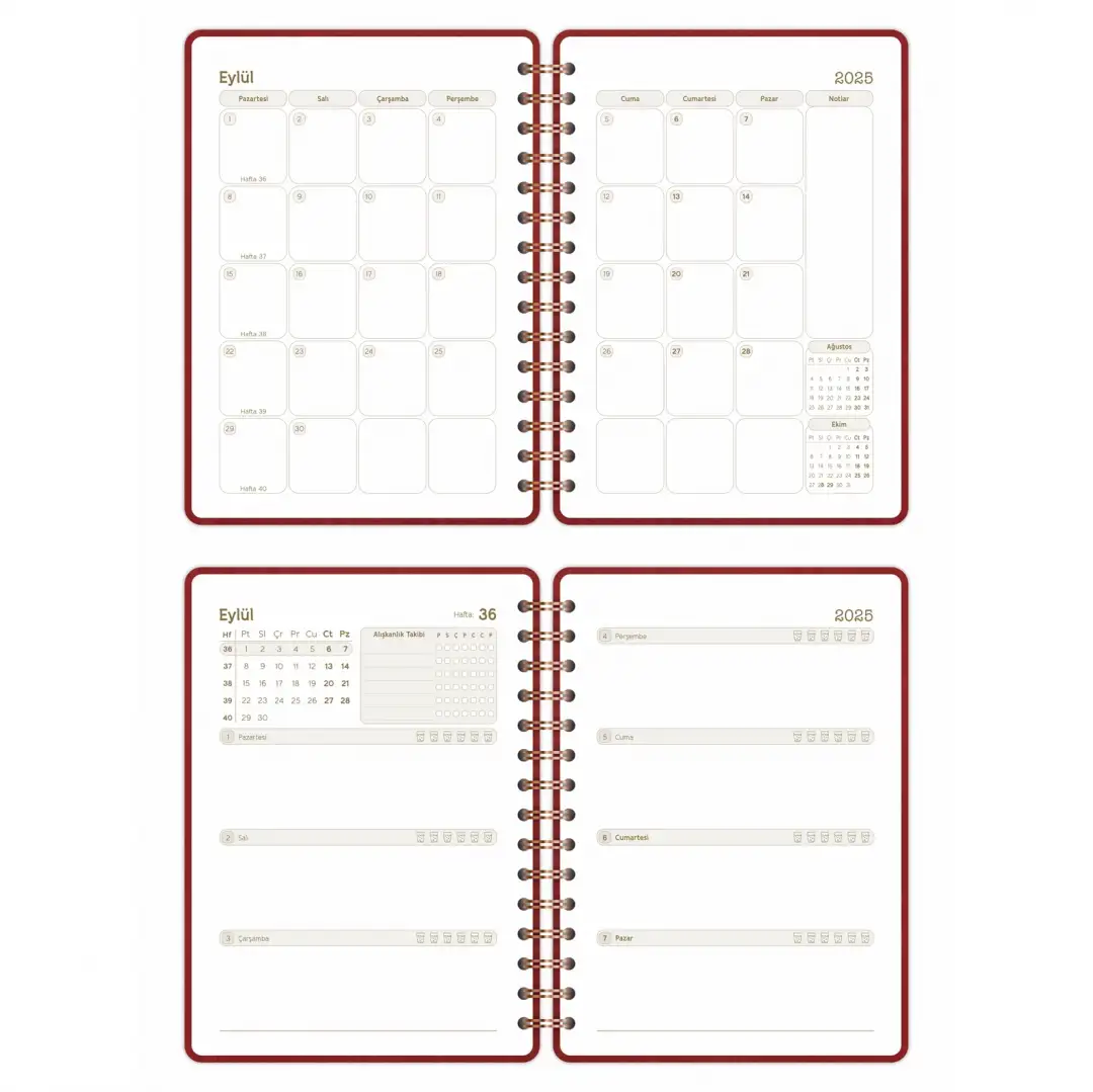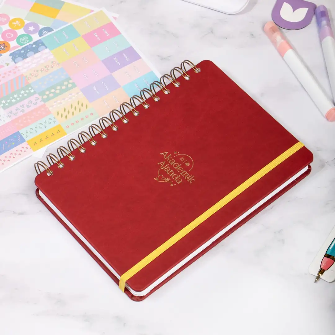 2025-2026 A5 Akademik Ajanda Spiralli Vegan Deri Kapak 16 Aylık - Bordo