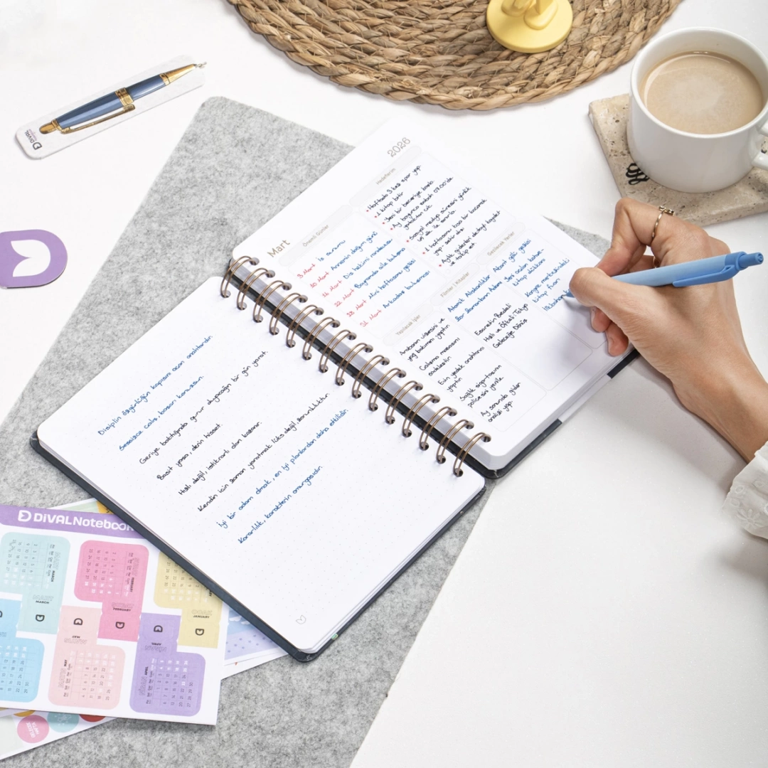 Dival Notebook, yalnızca bir planlayıcı değil; zaman yönetimini güçlendiren, hedeflerinizi görünür kılan ve sizi başarıya taşıyan bir yol arkadaşıdır.