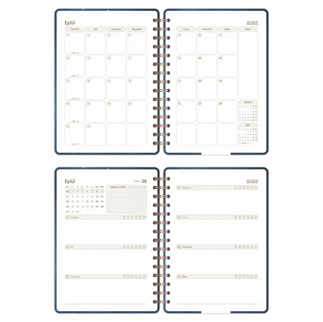 2025-2026 A5 Akademik Ajanda Spiralli Kuşe Kapak 16 Aylık - Yıldızlı Gökyüzü