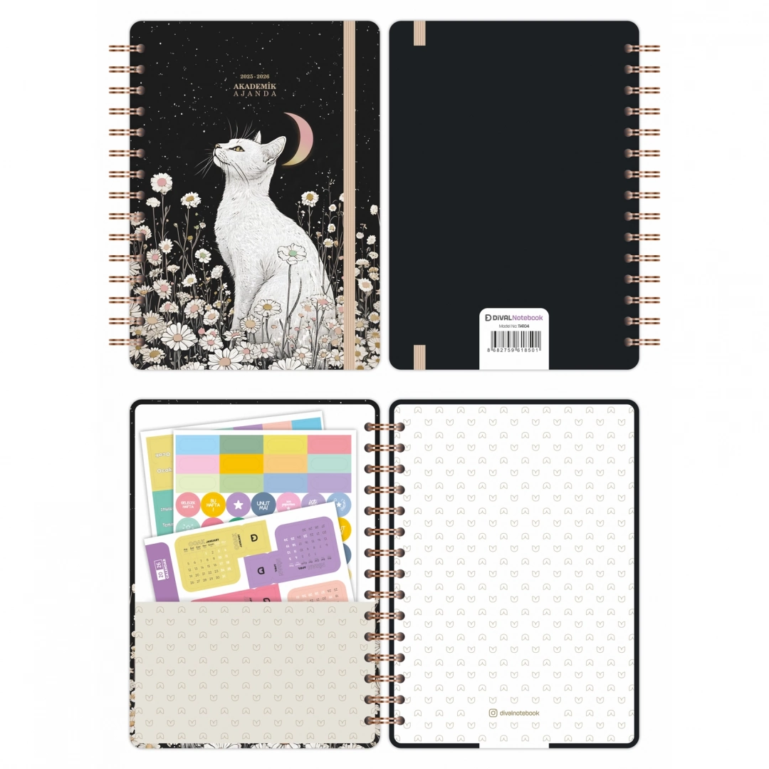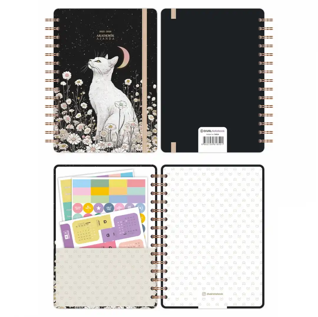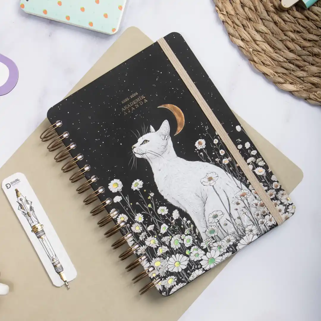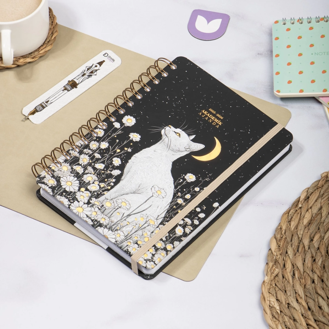 2025-2026 A5 Akademik Ajanda Spiralli Kuşe Kapak 16 Aylık - Yıldızlı Kedi
