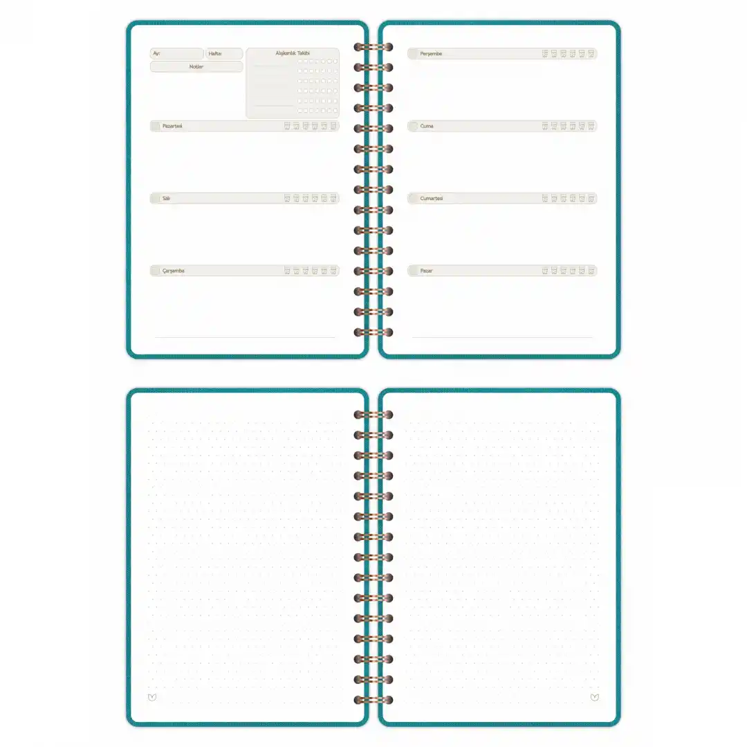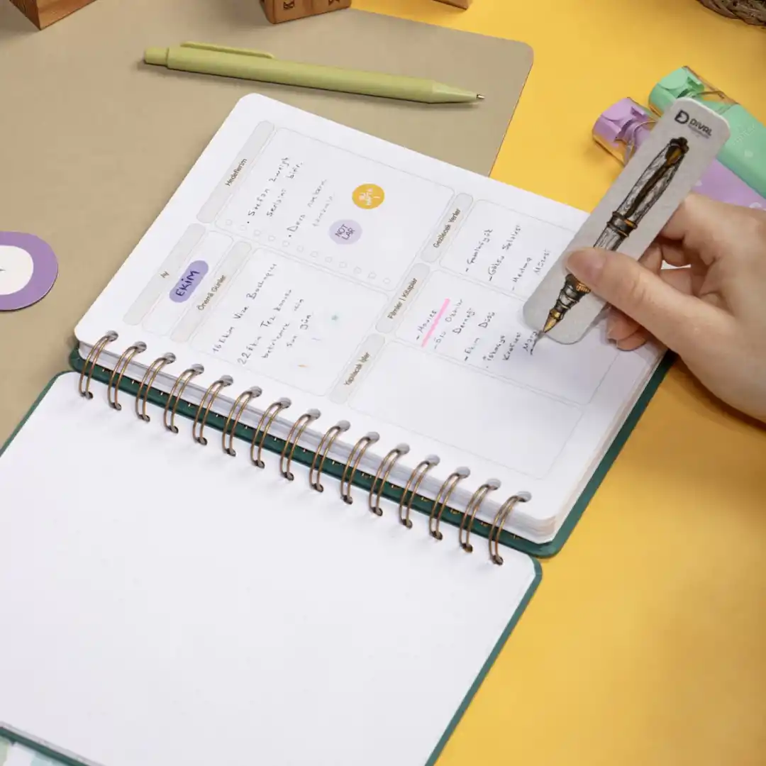 Dival Notebook Tarihsiz Haftalık Planlayıcı, hayatını daha düzenli, planlı ve keyifli hale getirmek isteyenler için özenle tasarlandı. Tarihsiz yapısıyla dilediğin zaman kullanmaya başlayabilir, kendi ritmine uygun bir düzen oluşturabilirsin.