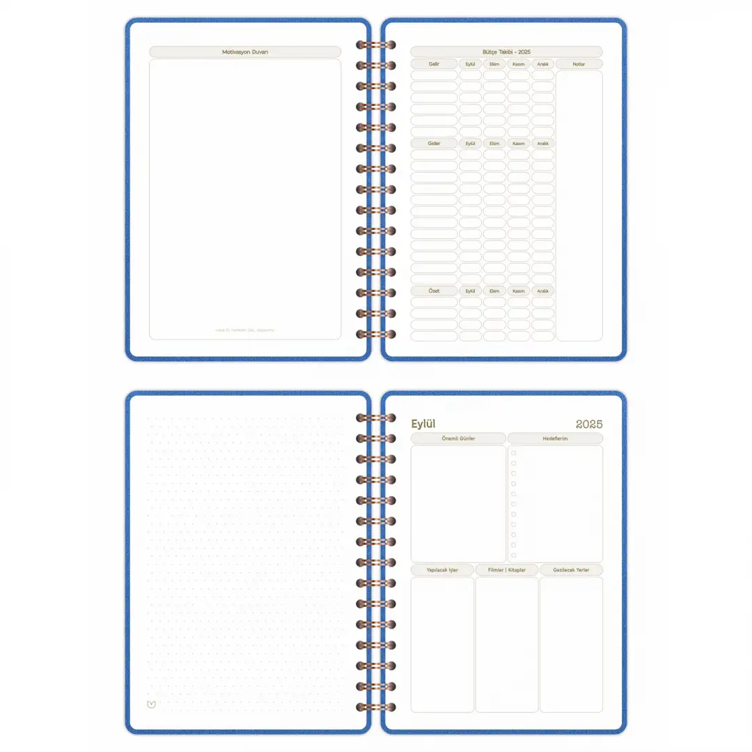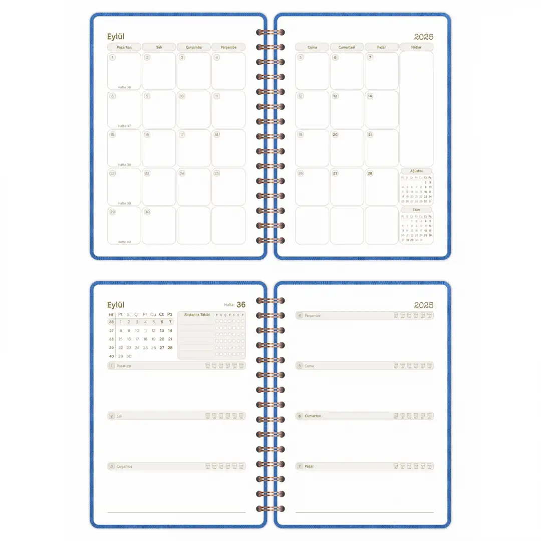2025-2026 A5 Akademik Ajanda Spiralli Kumaş Kapak 16 Aylık - Mavi