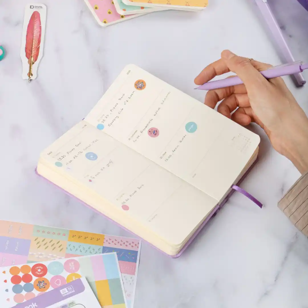 Minimal tasarımı, canlı renk seçenekleri ve fonksiyonel iç yapısıyla Dival Notebook 2025 Ajanda, yıl boyunca planlarını düzenli ve keyifli şekilde takip etmek isteyenler için özel olarak tasarlandı.