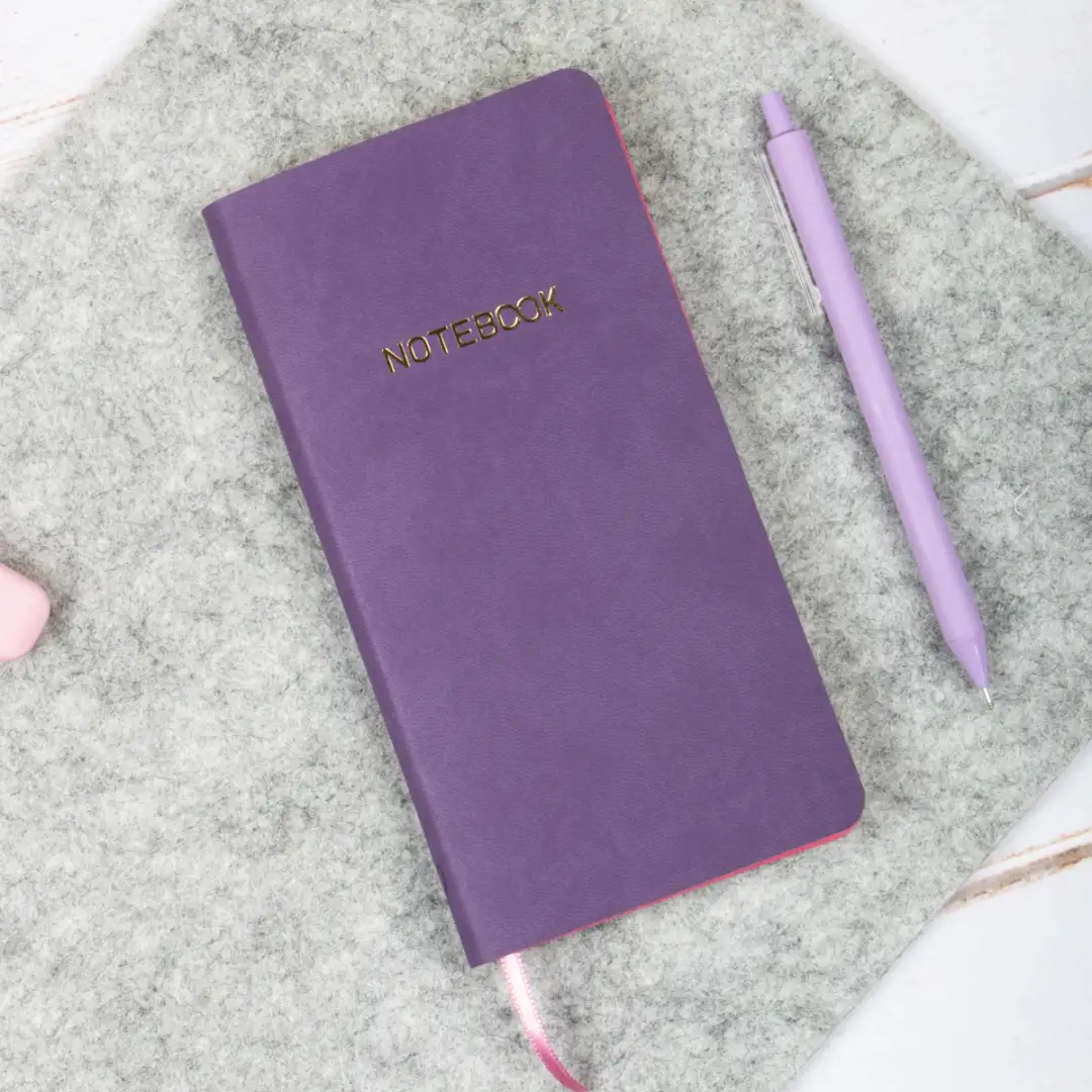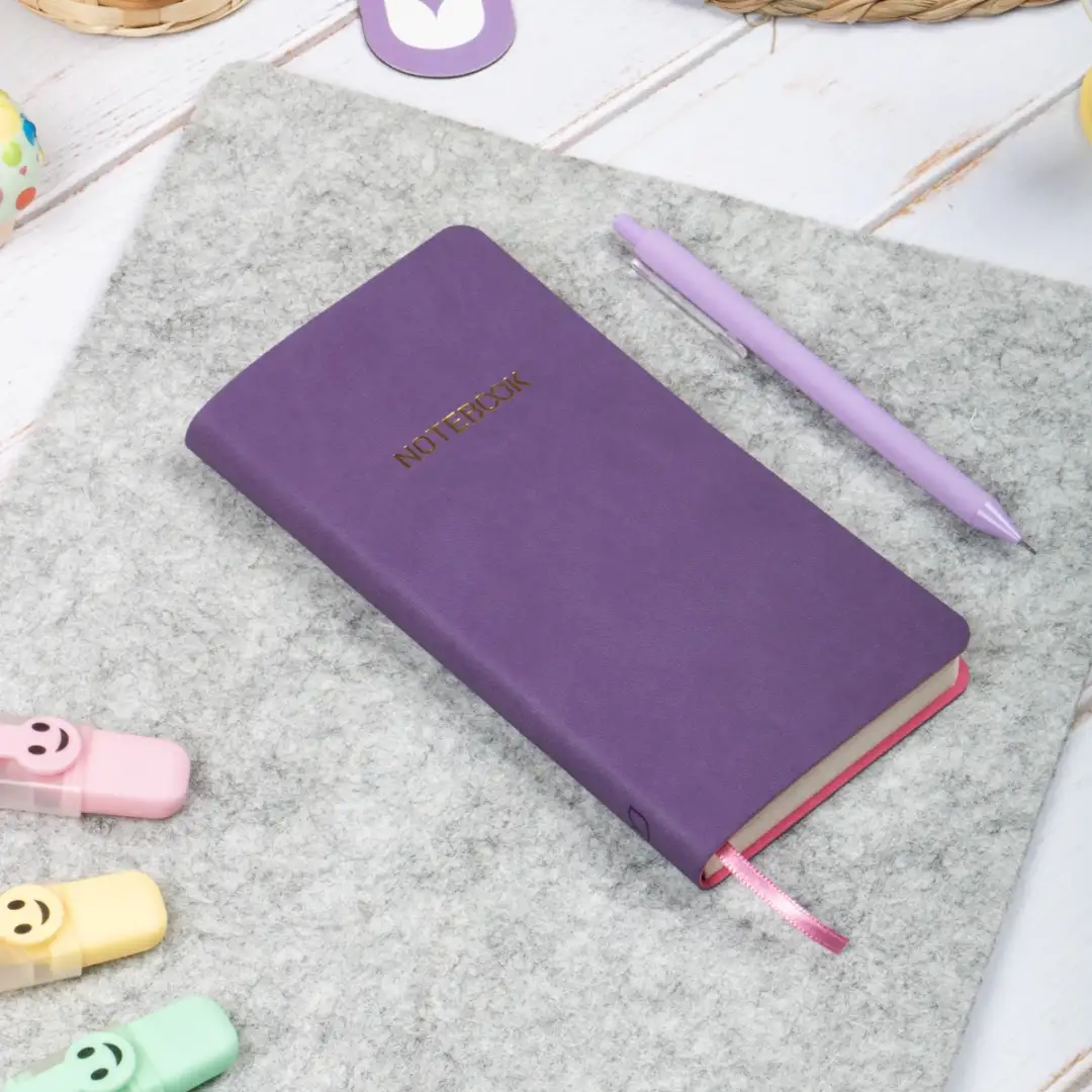9x18 cm Mor Yumuşak Vegan Deri Kapak Kareli Tarihsiz Not Okul Defteri