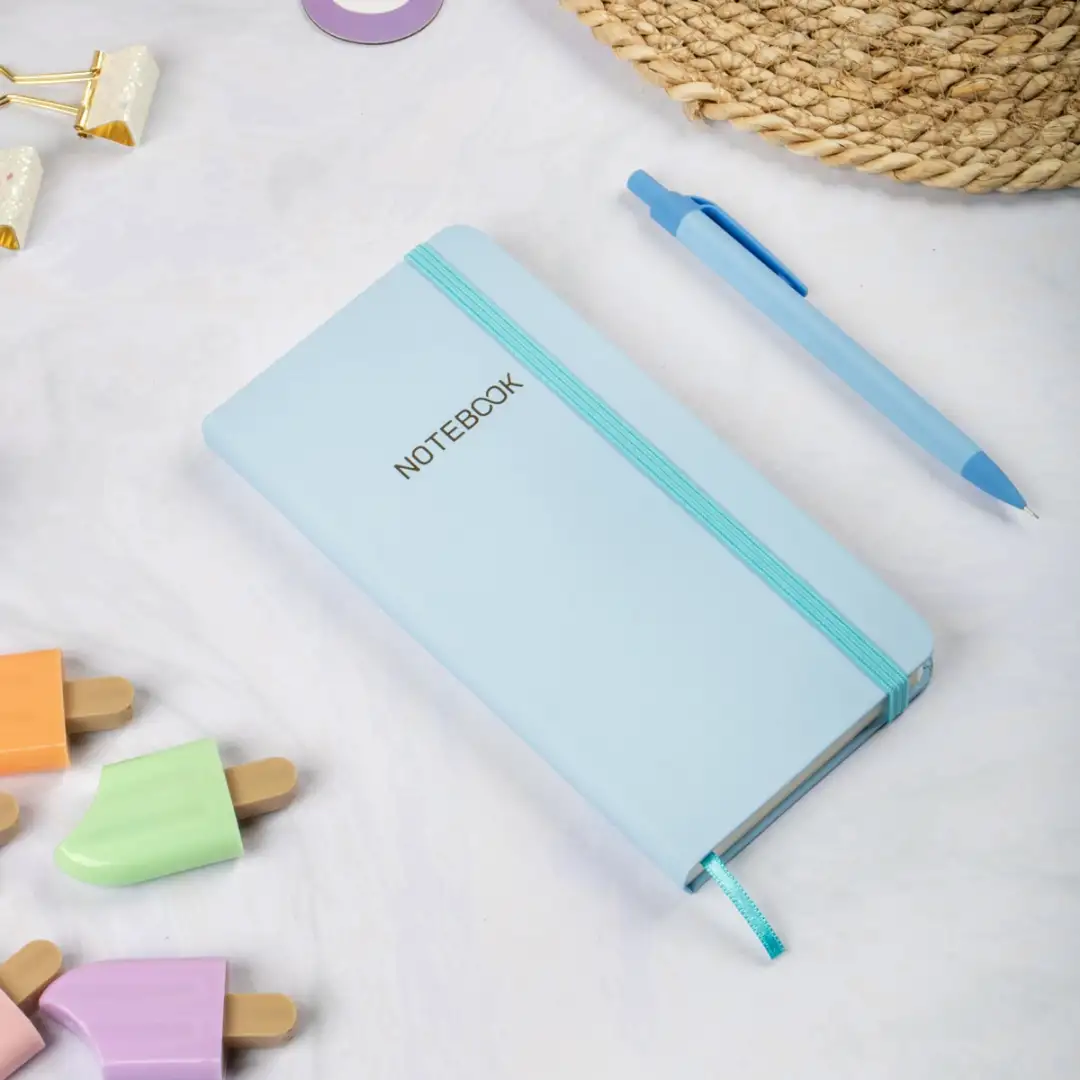 9x18 cm Sert Kapak Kareli Tarihsiz Dikişli Not Okul Defteri - Mavi