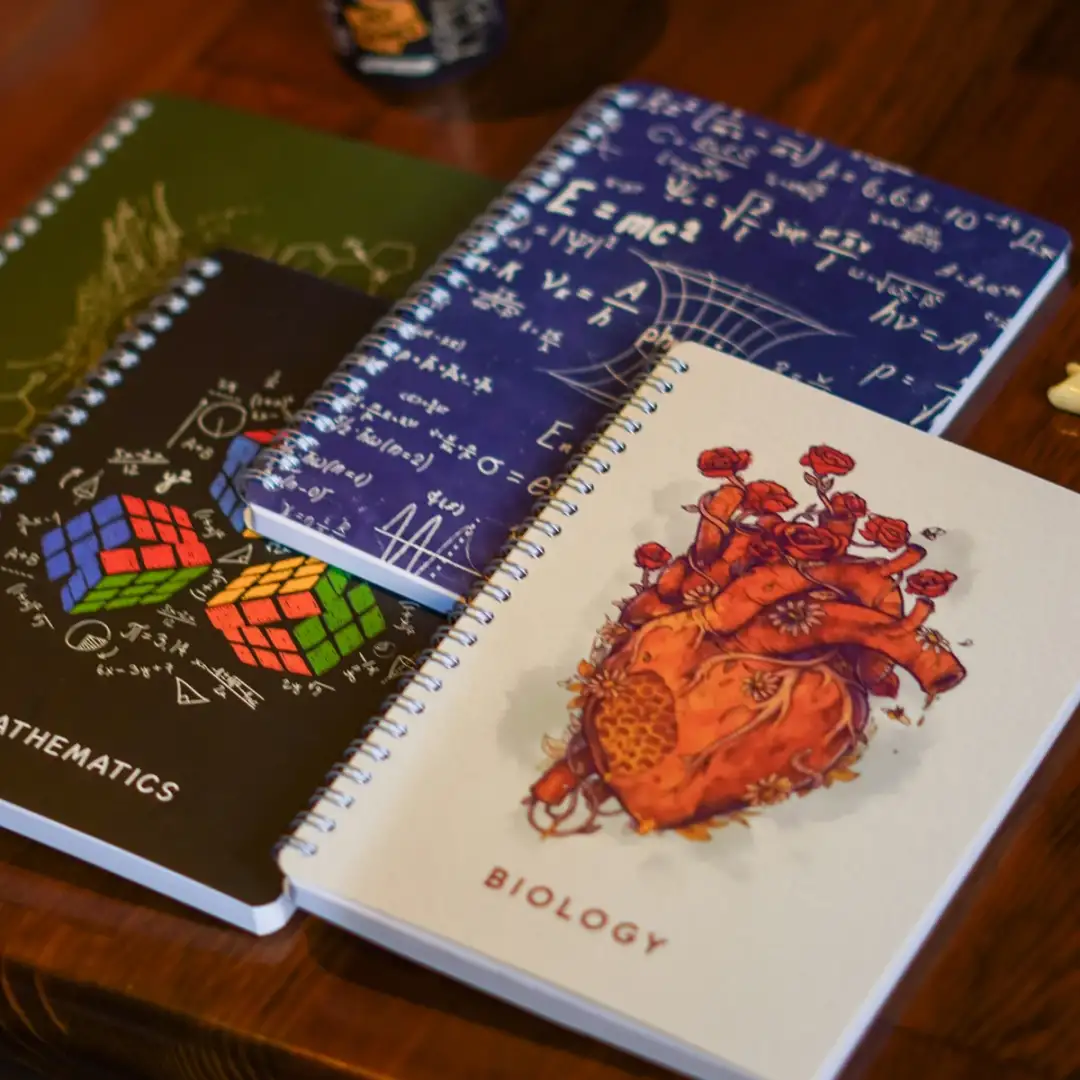 Matematikten fiziğe, biyolojiden kimyaya kadar bilimin büyüleyici dünyasını sayfalarına taşıyan özel tasarımlı defter seti! Her ders için ayrı kapak tasarımıyla hazırlanmış bu A5 boyutundaki defterler, hem öğrenciler hem de bilim meraklıları için ilham verici.