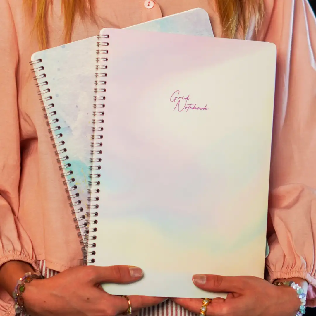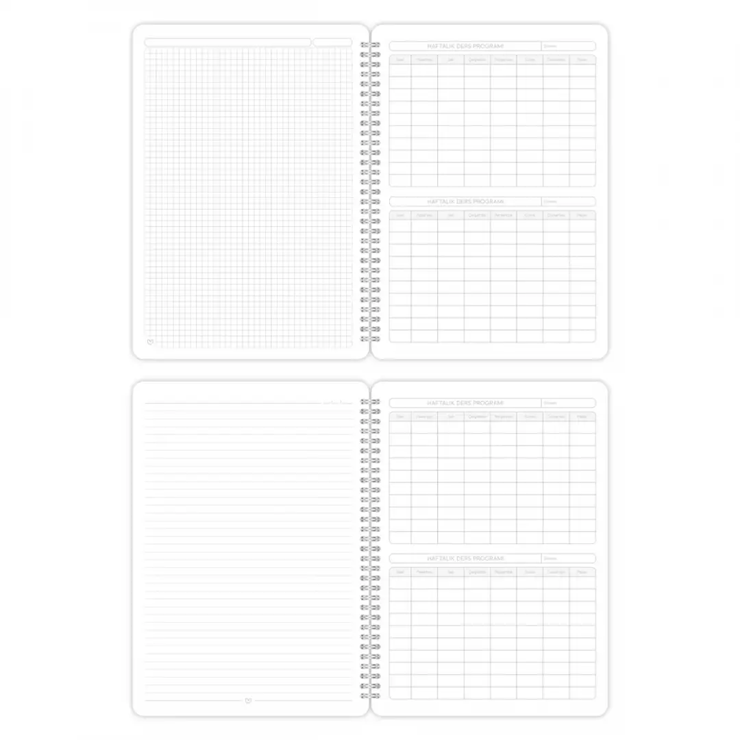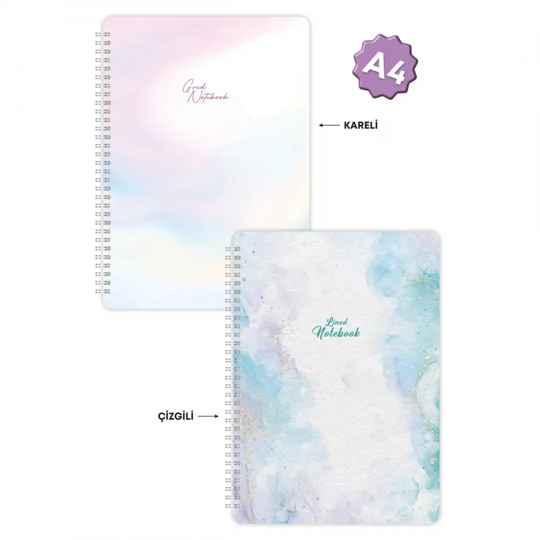 A4 Spiralli Karton Kapak 2’li Set Kareli Ders Programlı Not Okul Defteri - Pastel Serisi