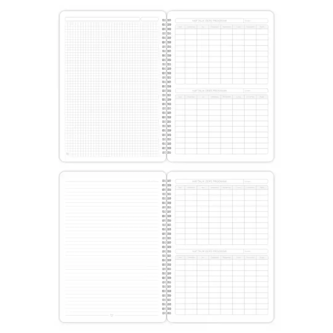 Bu özel defteri, yalnızca not almak için değil; ruhunu, düşüncelerini ve ilhamını özgün bir şekilde yansıtman için tasarlandı. Bütün bir dönem boyunca sana eşlik edecek defter, en düzenli notların için kareli sayfa düzeniyle üretildi.