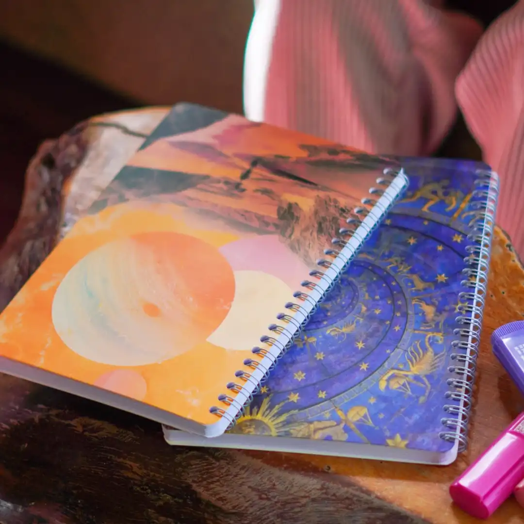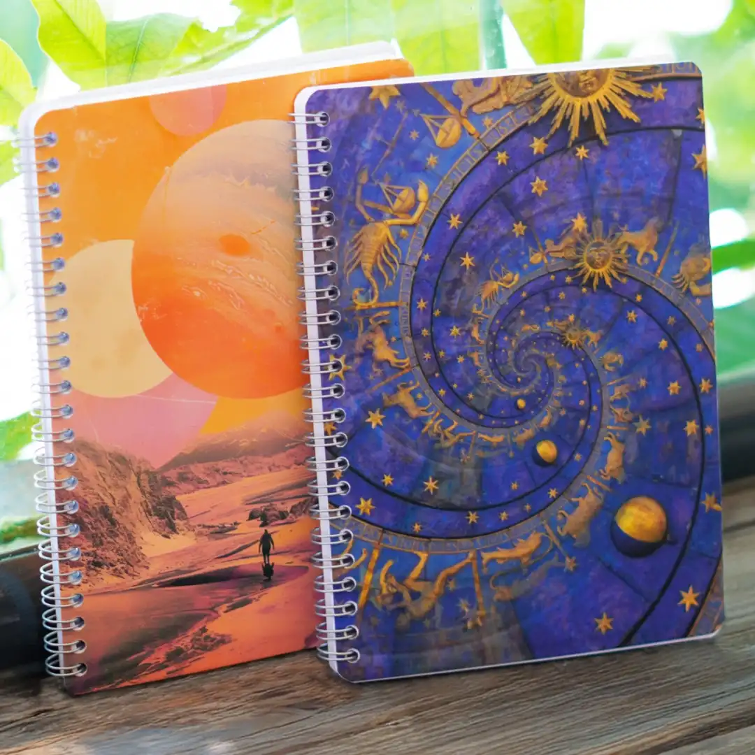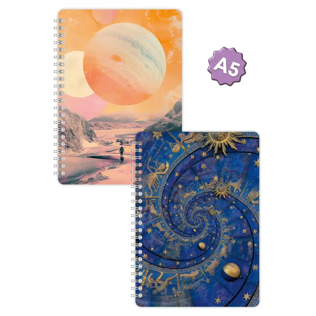Uzayın derinliklerinden ilham alan göz alıcı galaksi deseni, defterinizi diğerlerinden ayırır. Mor, mavi ve pembe tonlarının uyumlu karışımı ile hem estetik hem de modern bir görünüm sunar.