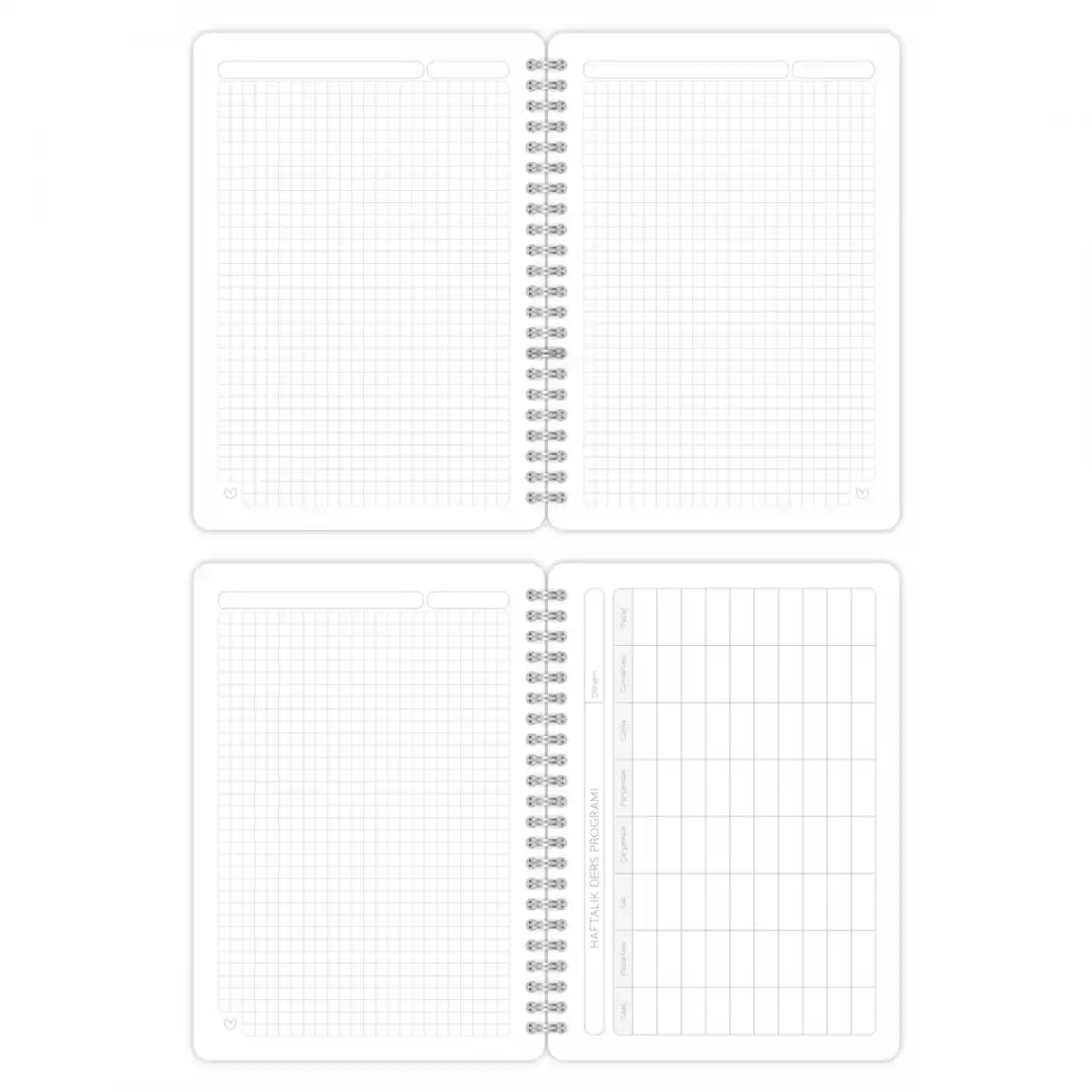 A5 Spiralli Kareli Okul Defteri 2’li Set – Karton Kapak, Ders Programlı – Galaksi 2
