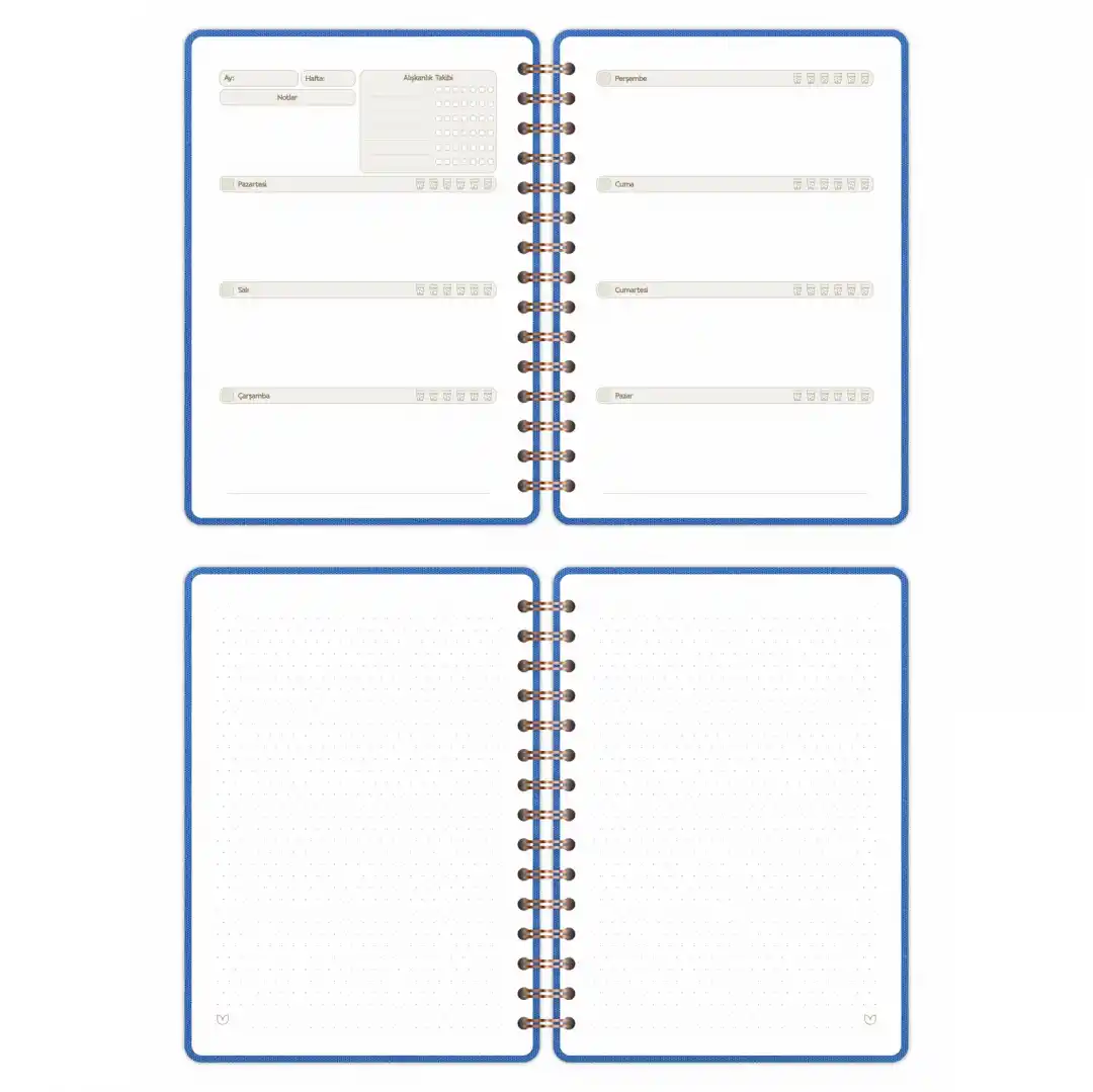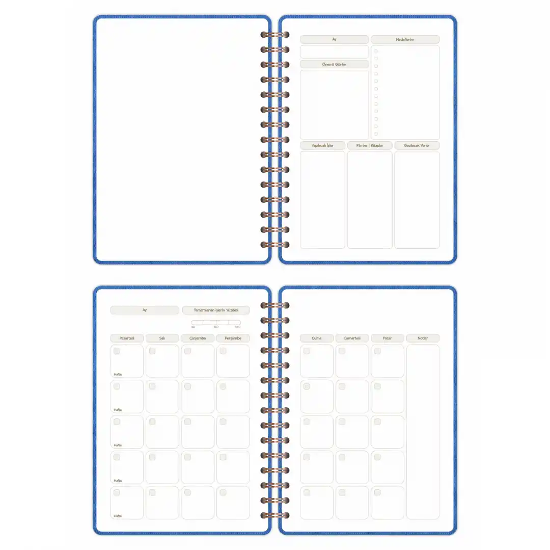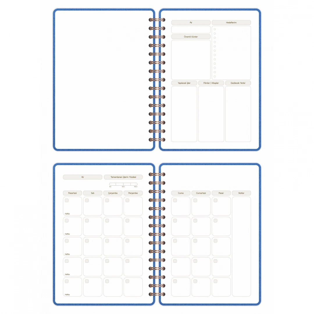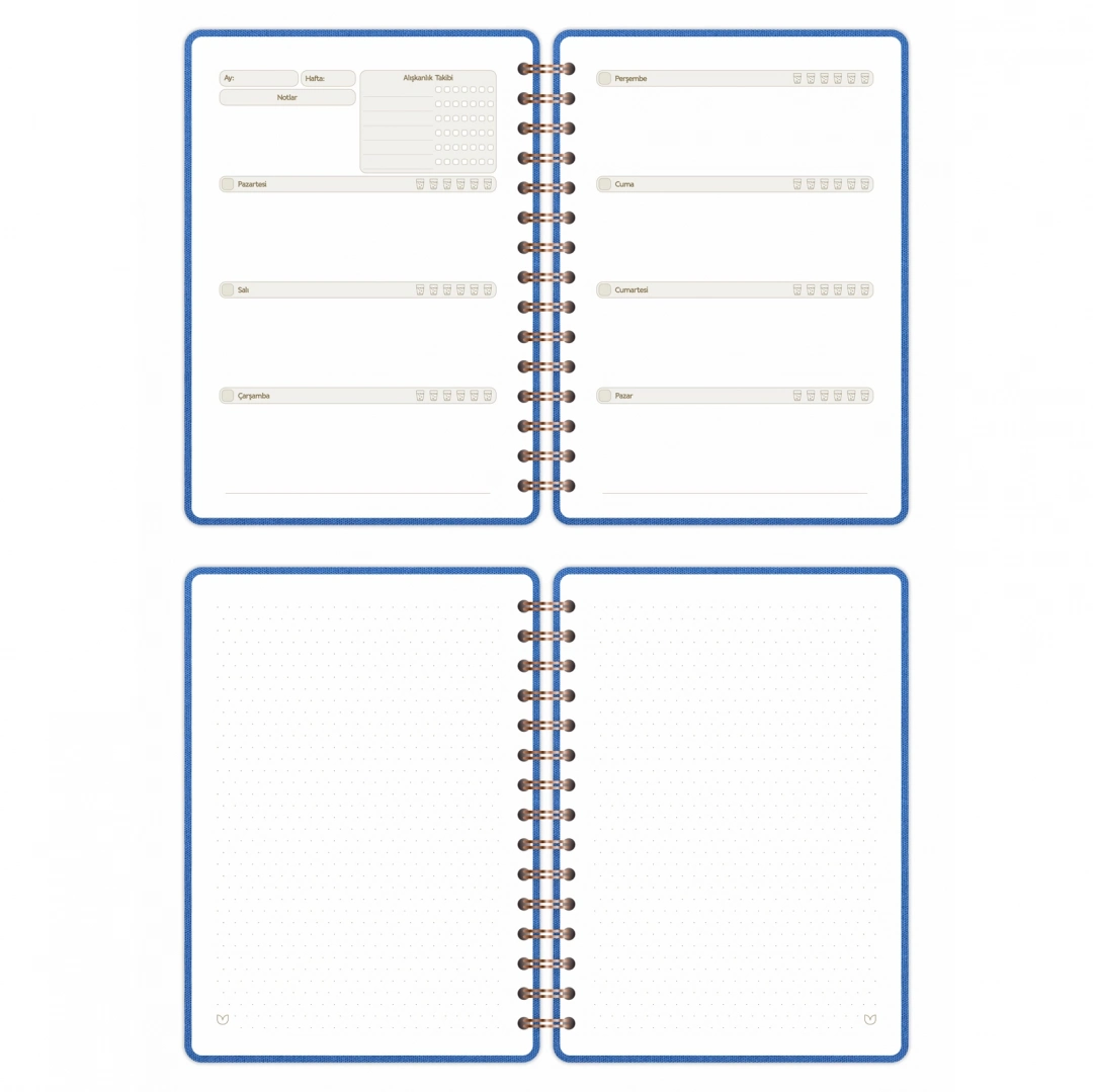 A5 Süresiz Haftalık Planlayıcı Spiralli Kumaş Kapak - Mavi