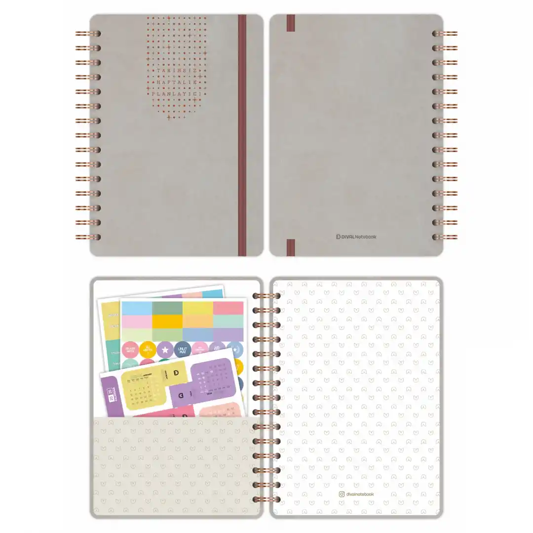 Dival Notebook Tarihsiz Haftalık Planlayıcı, hayatını daha düzenli, planlı ve keyifli hale getirmek isteyenler için özenle tasarlandı. Tarihsiz yapısıyla dilediğin zaman kullanmaya başlayabilir, kendi ritmine uygun bir düzen oluşturabilirsin.