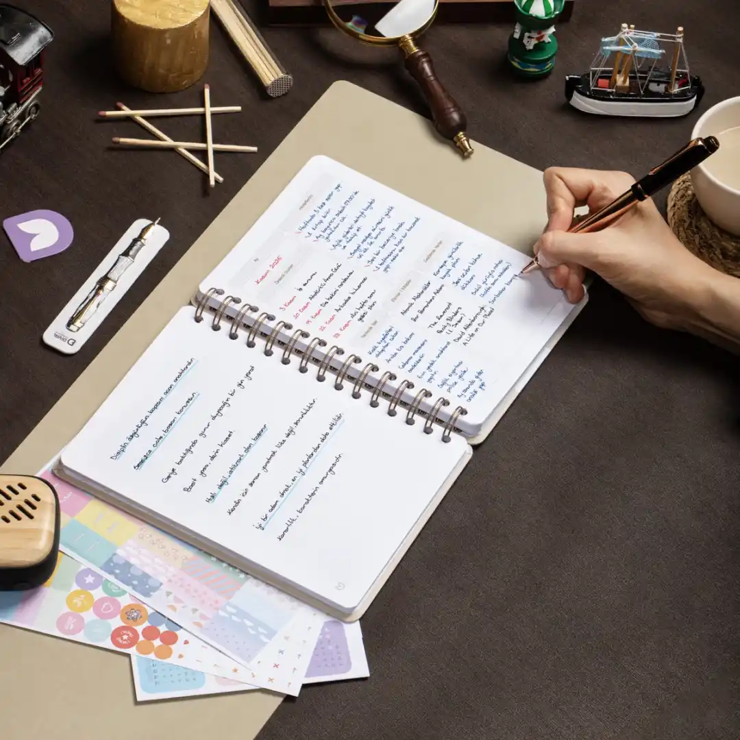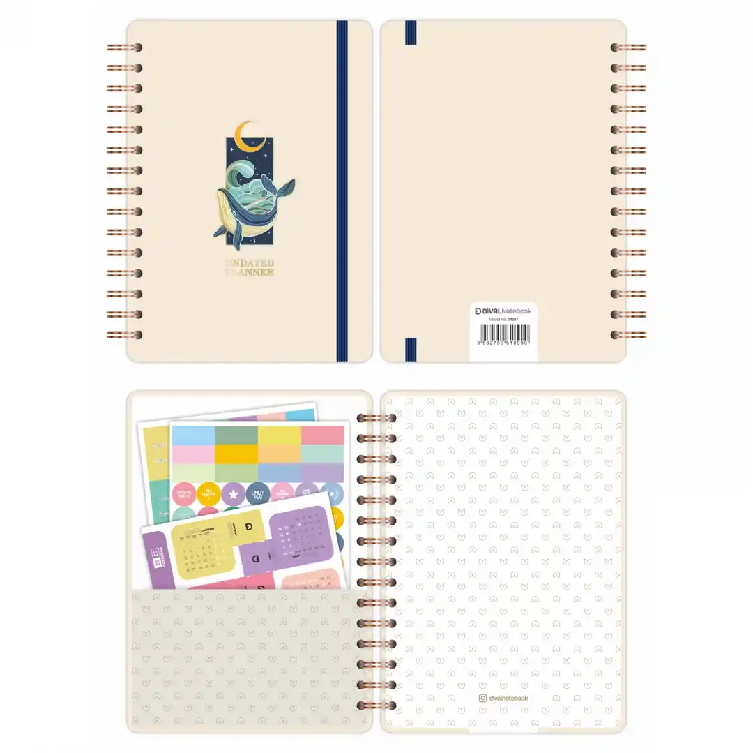 Dival Notebook Tarihsiz Haftalık Planlayıcı, hayatını daha düzenli, planlı ve keyifli hale getirmek isteyenler için özenle tasarlandı. Tarihsiz yapısıyla dilediğin zaman kullanmaya başlayabilir, kendi ritmine uygun bir düzen oluşturabilirsin.