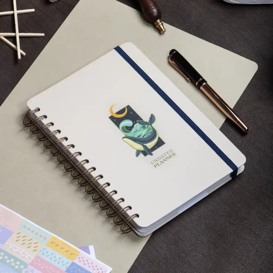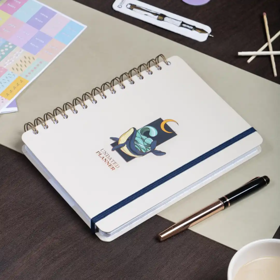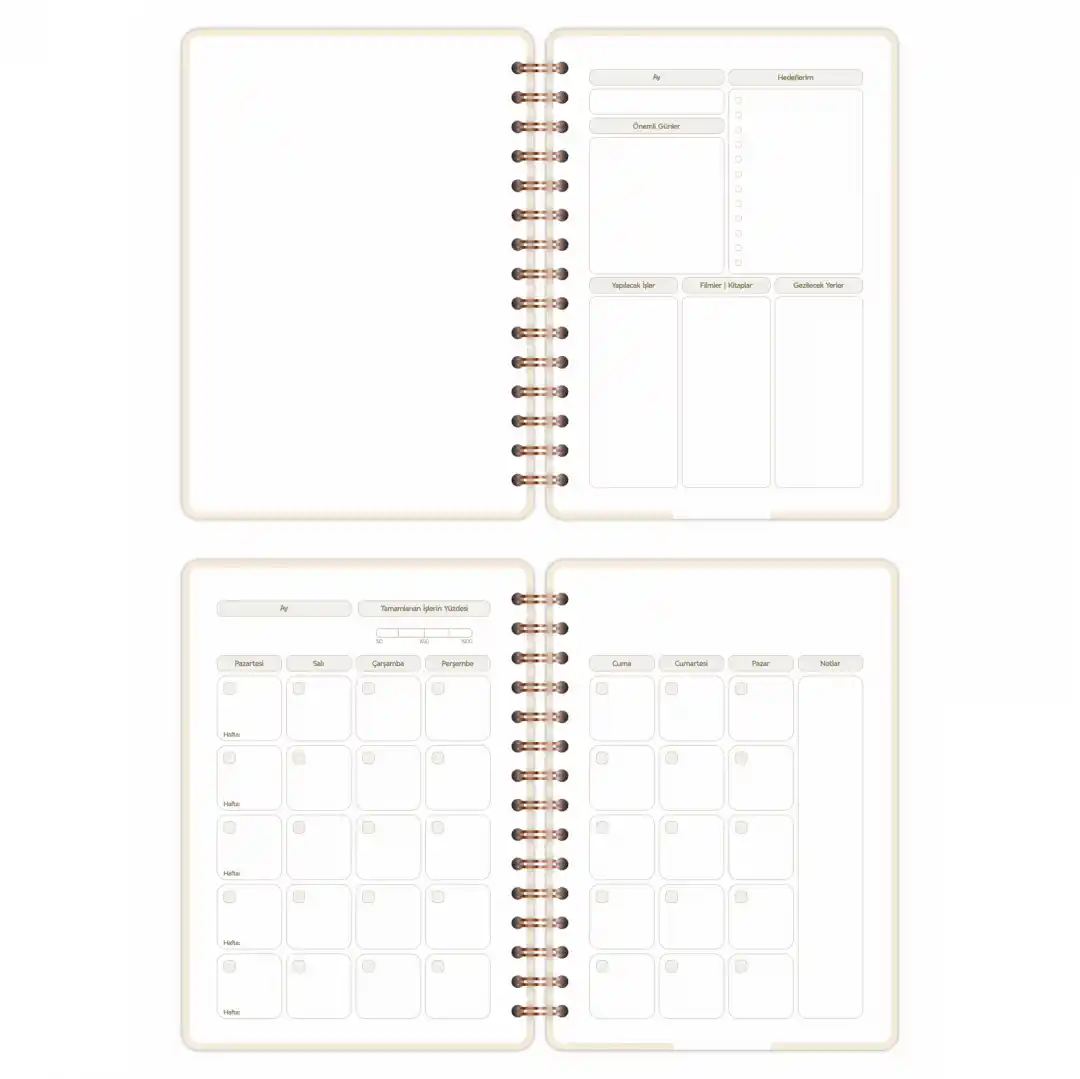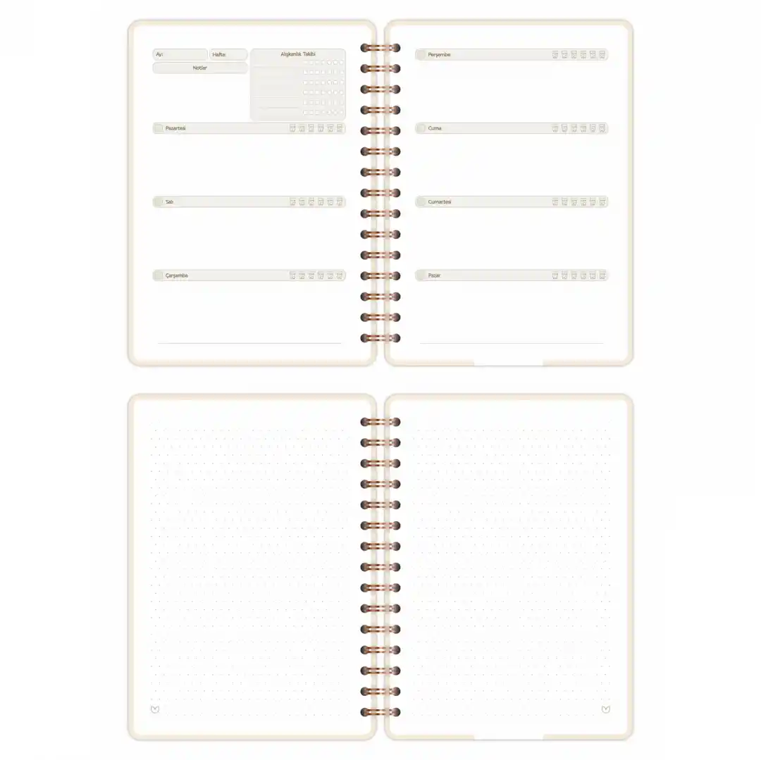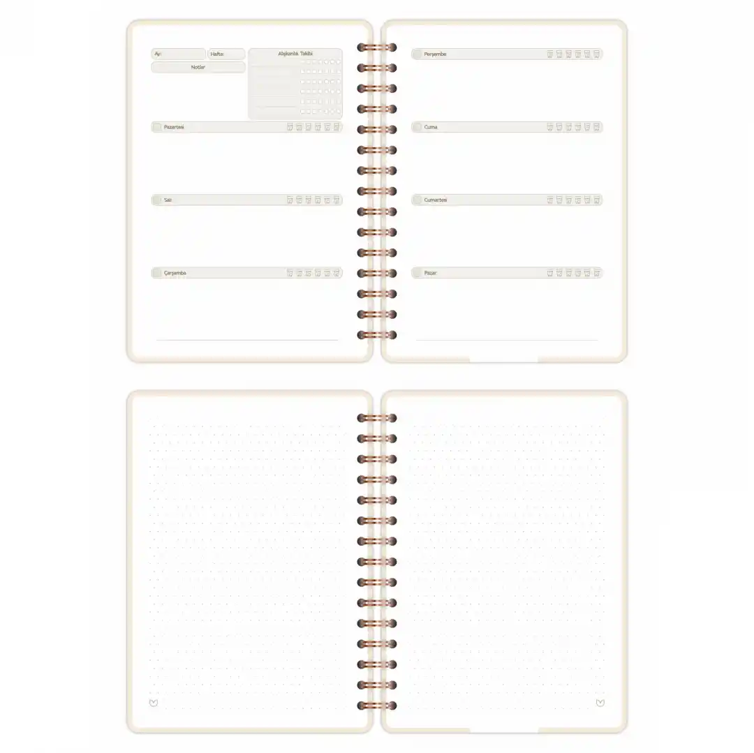 A5 Süresiz Haftalık Planlayıcı Spiralli Kuşe Kapak - Krem Deniz